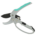 Профессиональный садовый секатор с храповым механизмом предназначен для обрезки живой и сухой древесины.Храповой механизм позволяет без лишних усилий перерезать толстые ветки в три движения. Вы делаете одно нажатие, затем ослабляете сжатие. Второе нажатие - ослабляете. Третье нажатие - финальный рез. При этом двигать или крутить секатор не нужно. Лезвие уже погрузилось в древесину и зафиксировалось в ней. Плавное поэтапное погружение гарантирует бережный и чистый рез. А так же снижает нагрузку на руку.