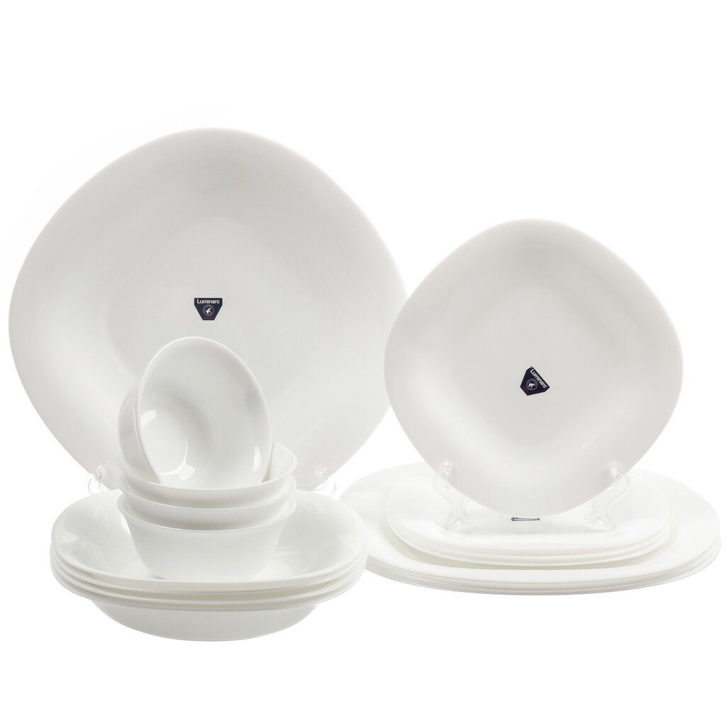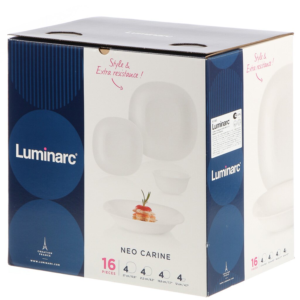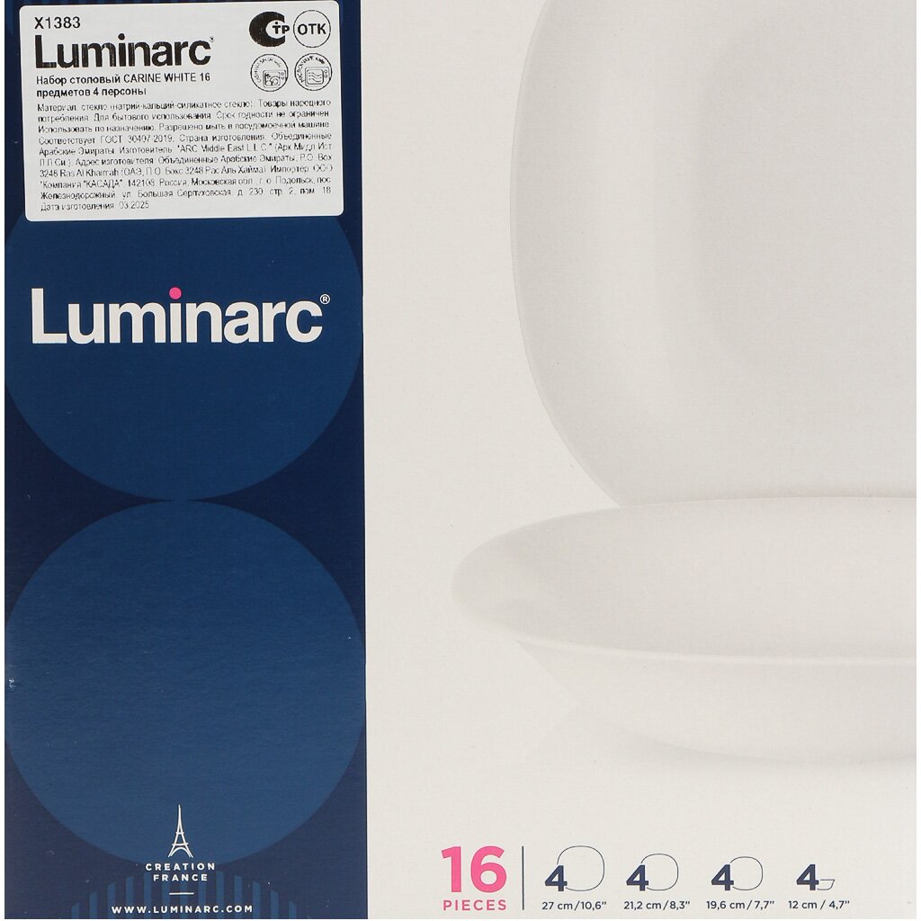 Столовый сервиз Luminarc Carine White на 4 персоны — 16 предметов из прочной стеклокерамики: элегантный подарок и практичное решение для дома и дачи.