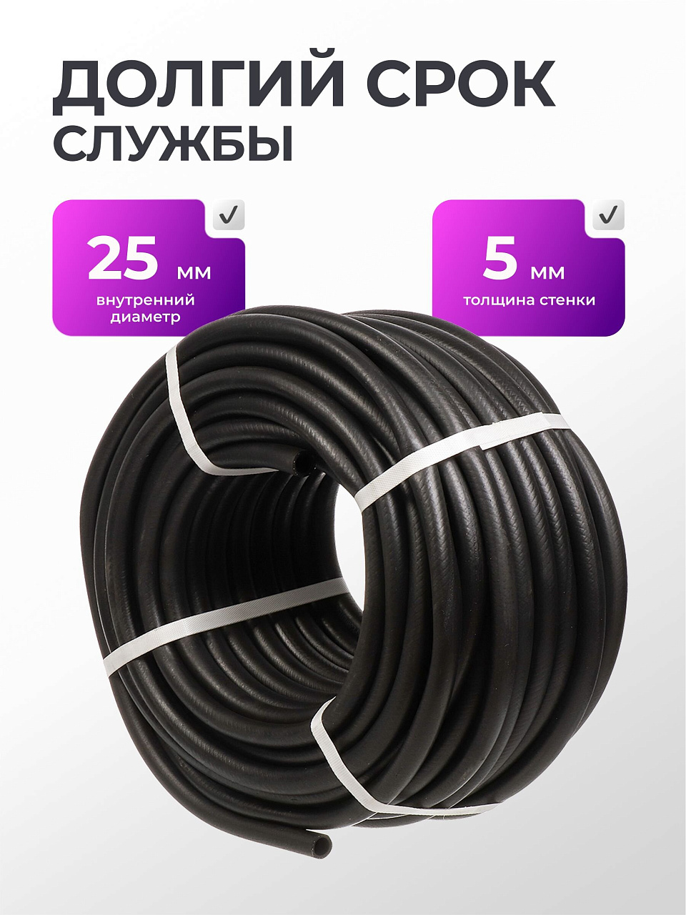 Поливочный шланг ВРТ Волжский — надежное решение для организации полива на участке, огороде или в саду. Прочный армированный шланг диаметром 1 дюйм (25 мм) выдерживает давление до 4 атмосфер, что обеспечивает стабильную подачу воды даже при интенсивном использовании. Черная резина гарантирует долговечность и устойчивость к износу, а цельная конструкция защищает от перегибов и разрывов. Длина 50 метров позволяет охватить большую площадь без необходимости частой перестановки, что особенно удобно для владельцев просторных участков.