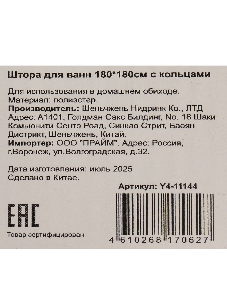 Штора для ванн 180х180 см, ПЭ, Бордовый однотонный, с кольцами, Y4-11144