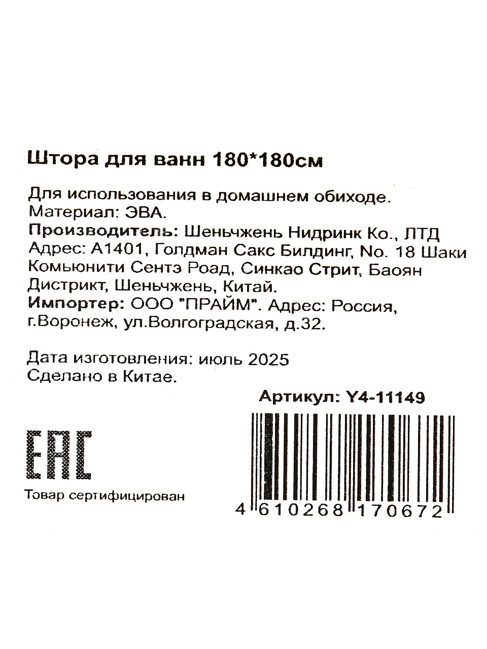 Штора для ванн 180х180 см, PEVA, Камни бежево-голубые, Y4-11149