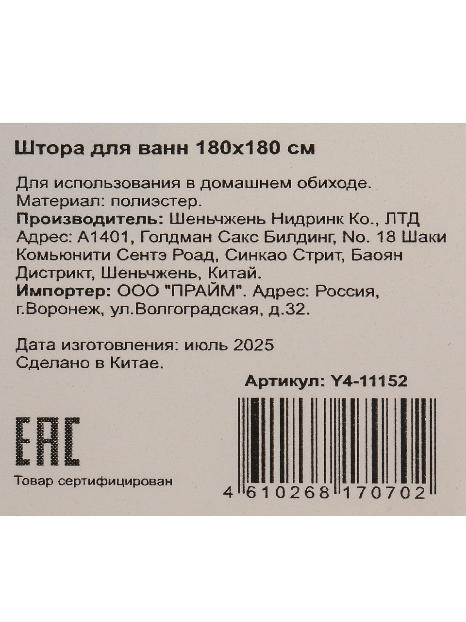 Штора для ванн 180х180 см, ПЭ, Бежевые полосы, с кольцами, Y4-11152