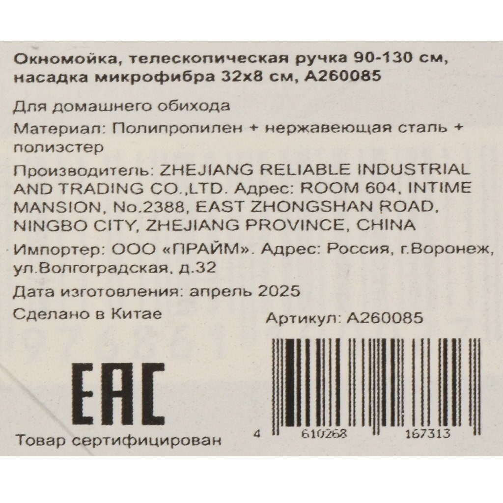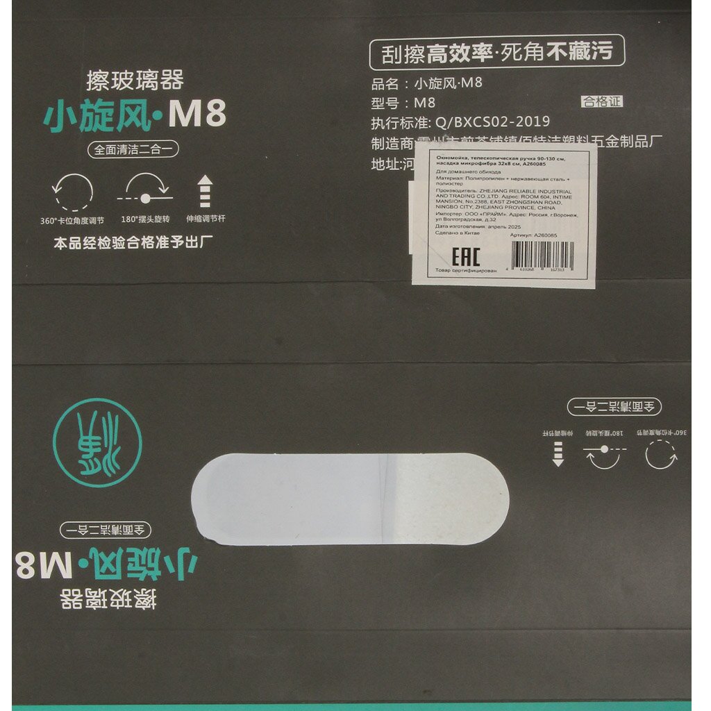 - Компактные размеры: рабочая зона 32×8 см, ручка регулируется от 90 до 130 см — подходит для окон разной высоты и ширины