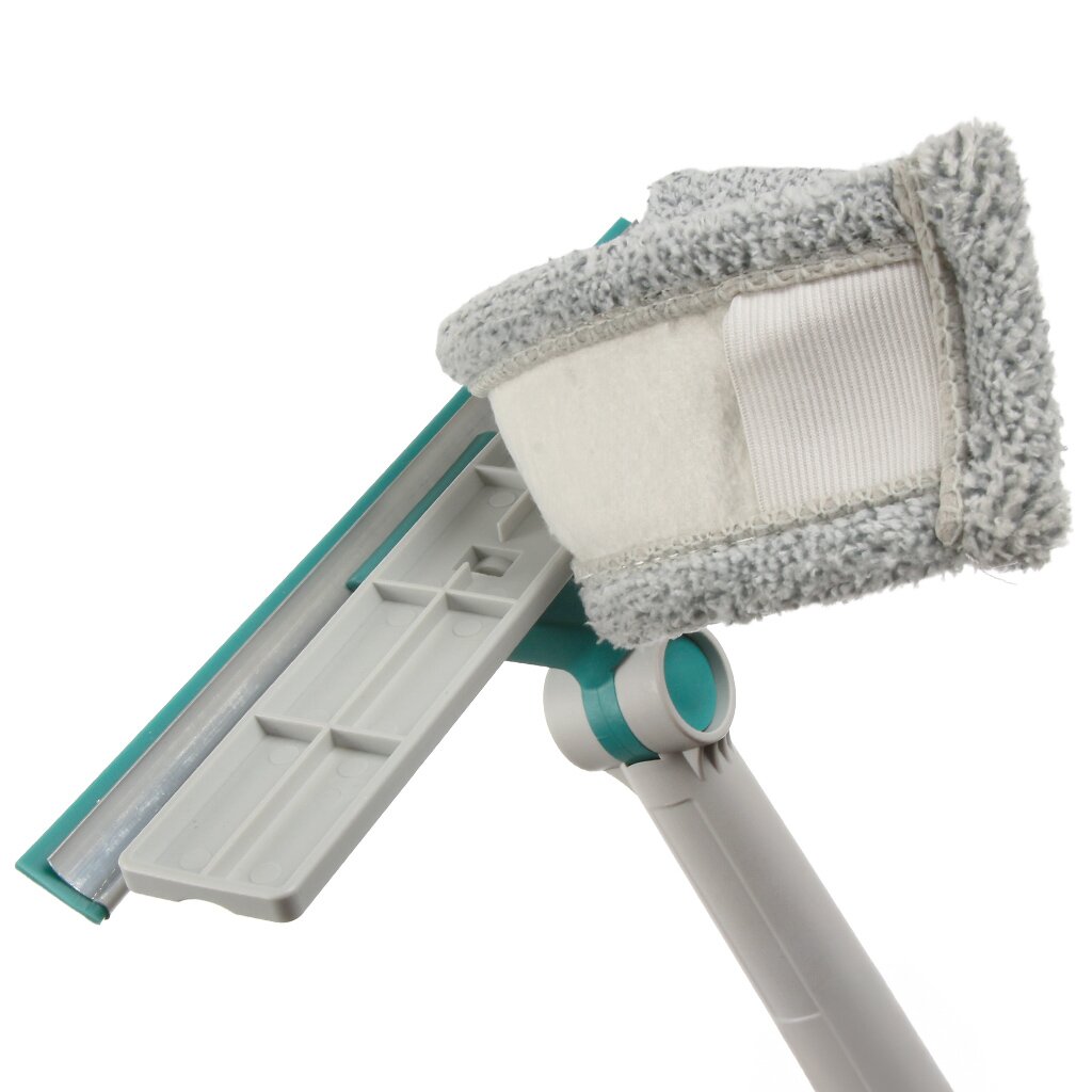 Главное отличие — телескопическая ручка с возможностью регулировки по длине и сменная насадка из микрофибры, которая не оставляет разводов и подходит для деликатных поверхностей.