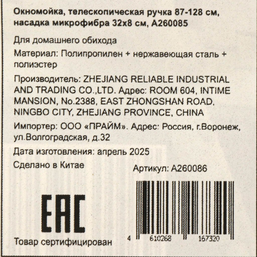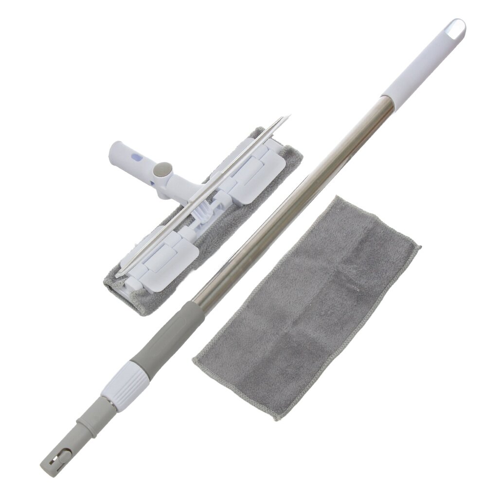 Окномойка с телескопической ручкой 87-128 см и насадкой из микрофибры 32х8 см — эффективная уборка окон, кафеля и пола без разводов и лишних усилий.