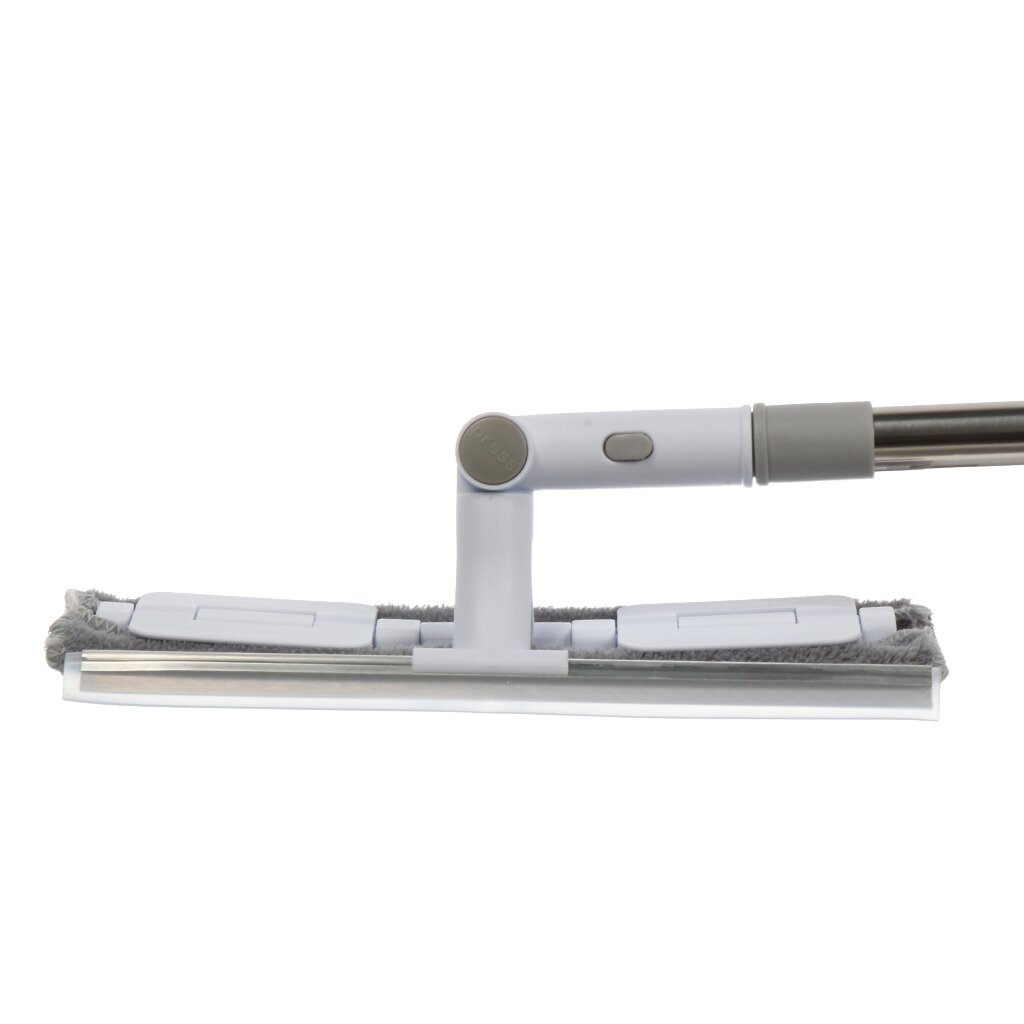 Телескопическая ручка регулируется от 87 до 128 см — удобно для мытья окон любой высоты, а насадка 32х8 см ускорит процесс на больших поверхностях.