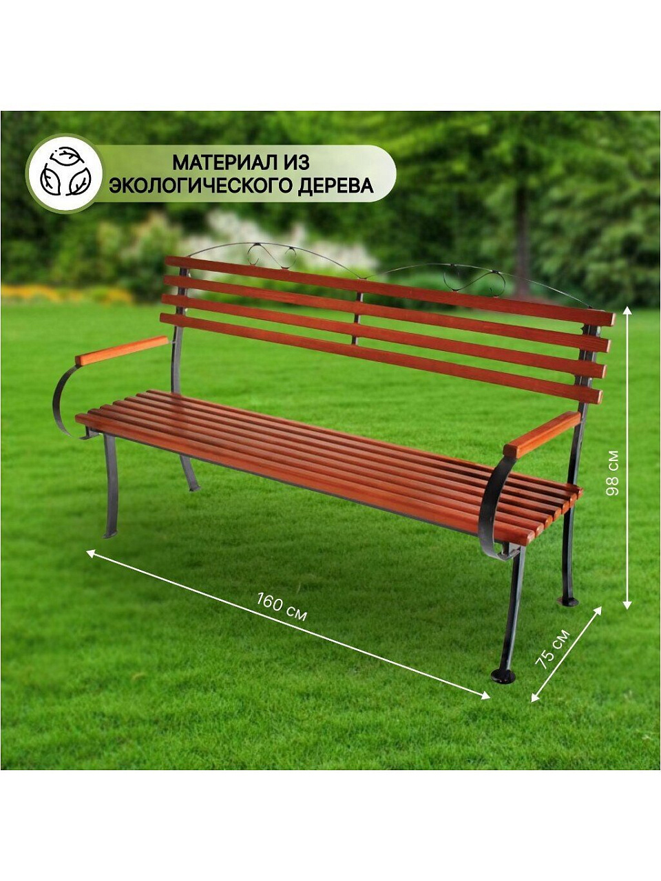 Скамейка садовая дерево, 160х75х98 см, ковка, Романтика — это не просто предмет мебели, а украшение для любого ландшафта. Натуральная сосна создает ощущение теплоты и уюта, а стальной каркас гарантирует долгий срок службы и устойчивость к внешним воздействиям. Трехместная конструкция позволяет разместить несколько человек одновременно, что особенно удобно для семейных посиделок или встреч с друзьями на даче.