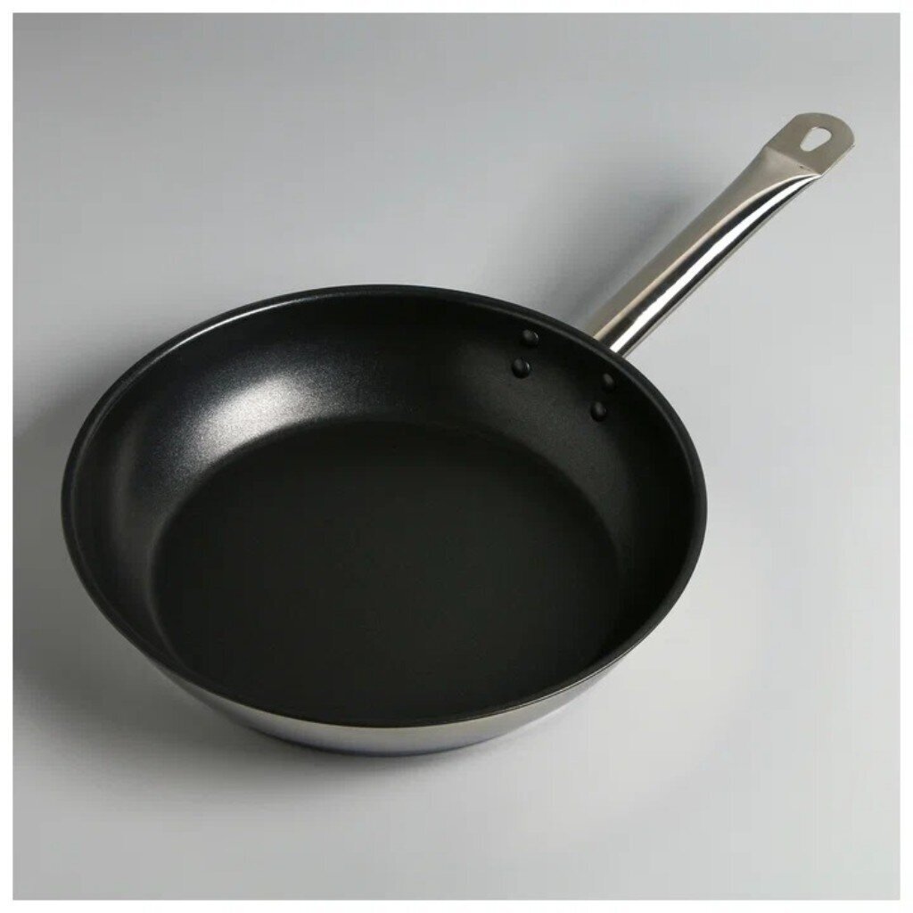 Сковорода из нержавеющей стали 28 см Катунь: антипригарное покрытие Xylan, универсальна для индукции, газовых и электрических плит. Выбор для дома и общепита.