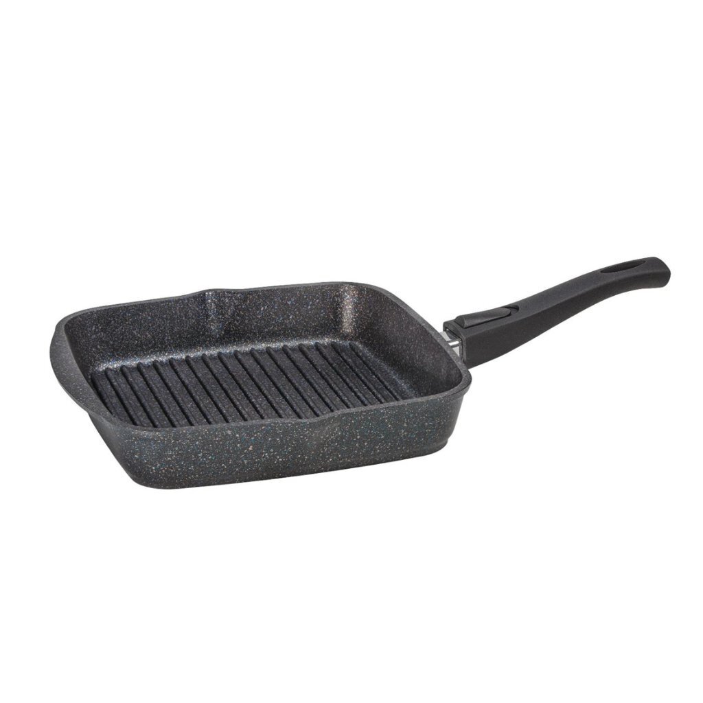 Сковорода-гриль литая Мечта Гранит Star 26 см — идеальный выбор для сочного мяса и овощей без лишнего масла. Съемная ручка, антипригарное гранитное покрытие, гарантия 5 лет.