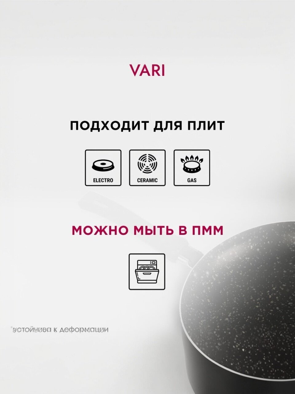 Нет, модель Vari KSKR14224 не рассчитана на индукционные плиты — она совместима с газовыми, электрическими и стеклокерамическими плитами за счёт алюминиевого корпуса.