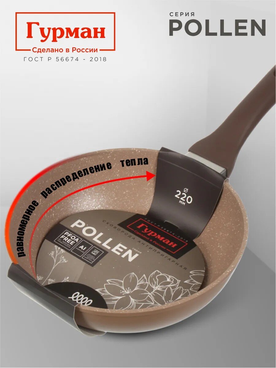 Сковорода алюминиевая 22 см с гранитным антипригарным покрытием Гурман Pollen — идеальное решение для индукционных плит, долговечность 3 года, выгодная цена для дома и дачи.