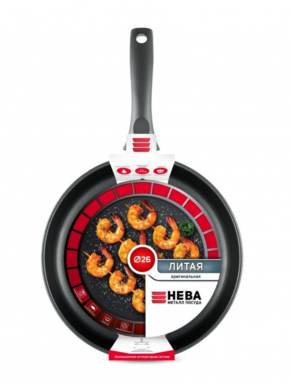 Сковорода литой алюминий, 26 см, антипригарное покрытие, Нева Металл Посуда, Оригинальная, низкая, 4526