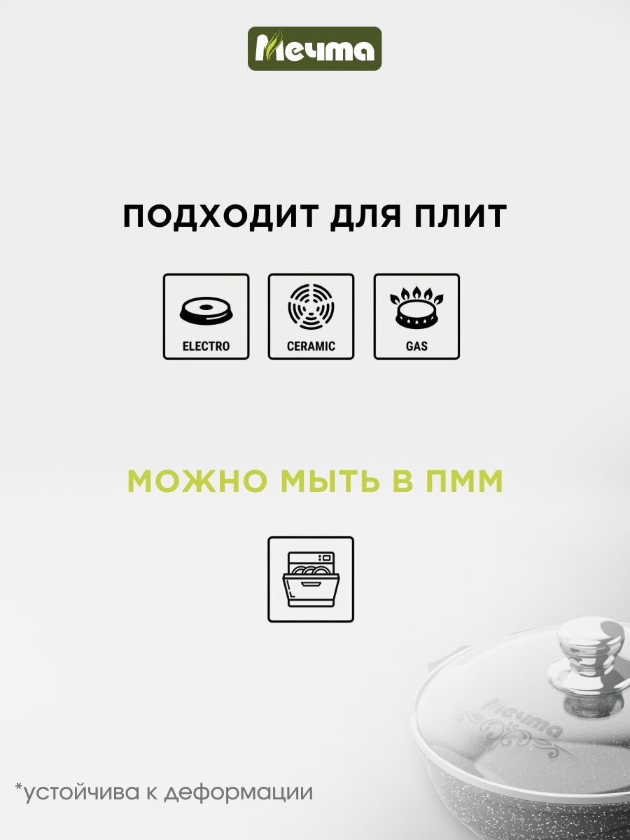 Оцените удобство и универсальность: заказать сковороду Мечта Гранит можно недорого с гарантией 12 месяцев. Сделайте покупку — и готовьте любимые блюда легко и вкусно!