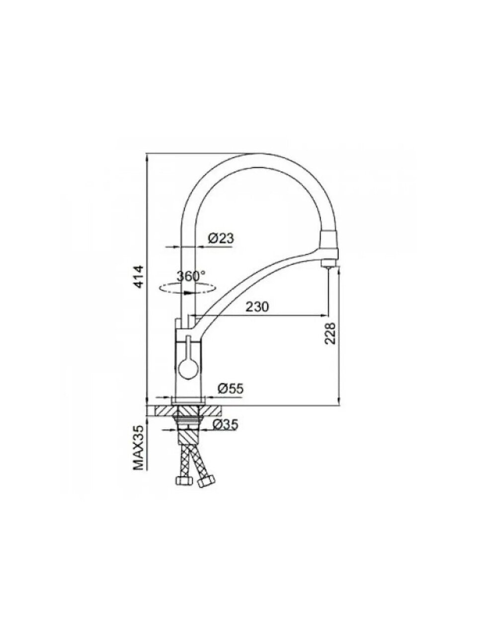 Смеситель оснащён отдельным каналом и переключателем для фильтра. Подключение осуществляется через стандартную гибкую подводку 1/2" к фильтрующему элементу. Монтаж на одно отверстие диаметром 55 мм.