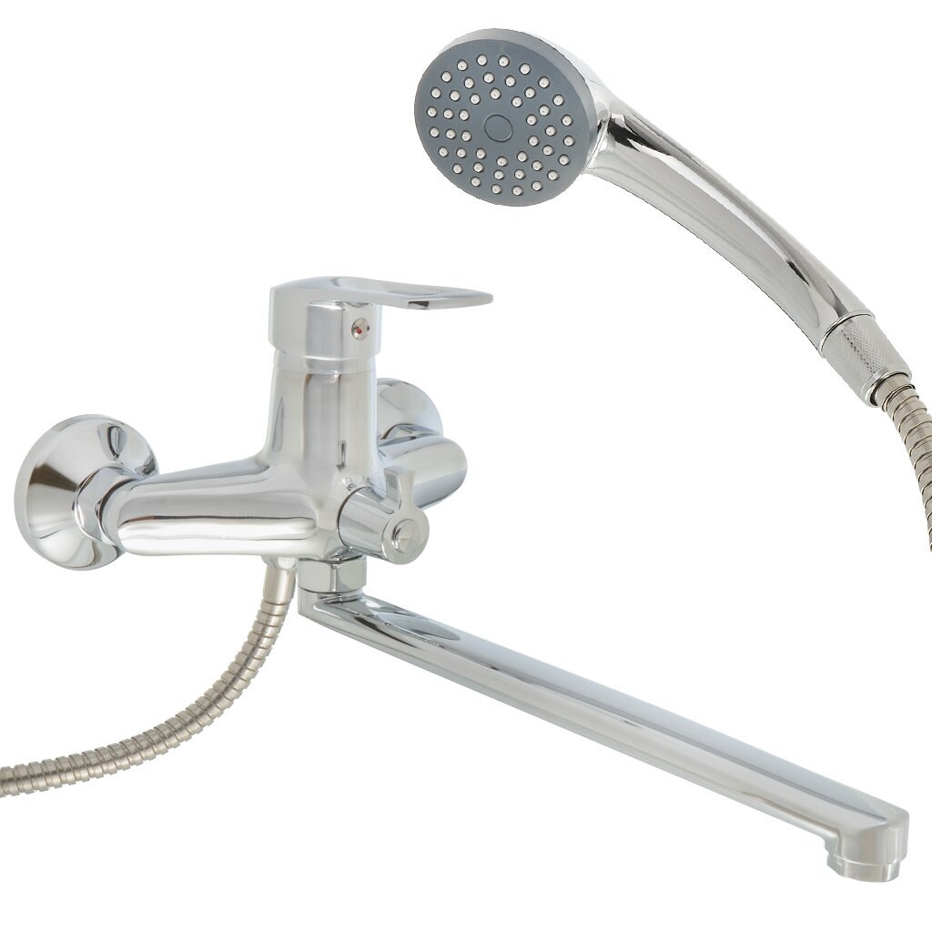Смеситель для ванны Aqwin A22217: долговечный и стильный выбор с керамическим картриджем, длинным изливом 30 см и глянцевым хромом — решение для вашего комфорта.