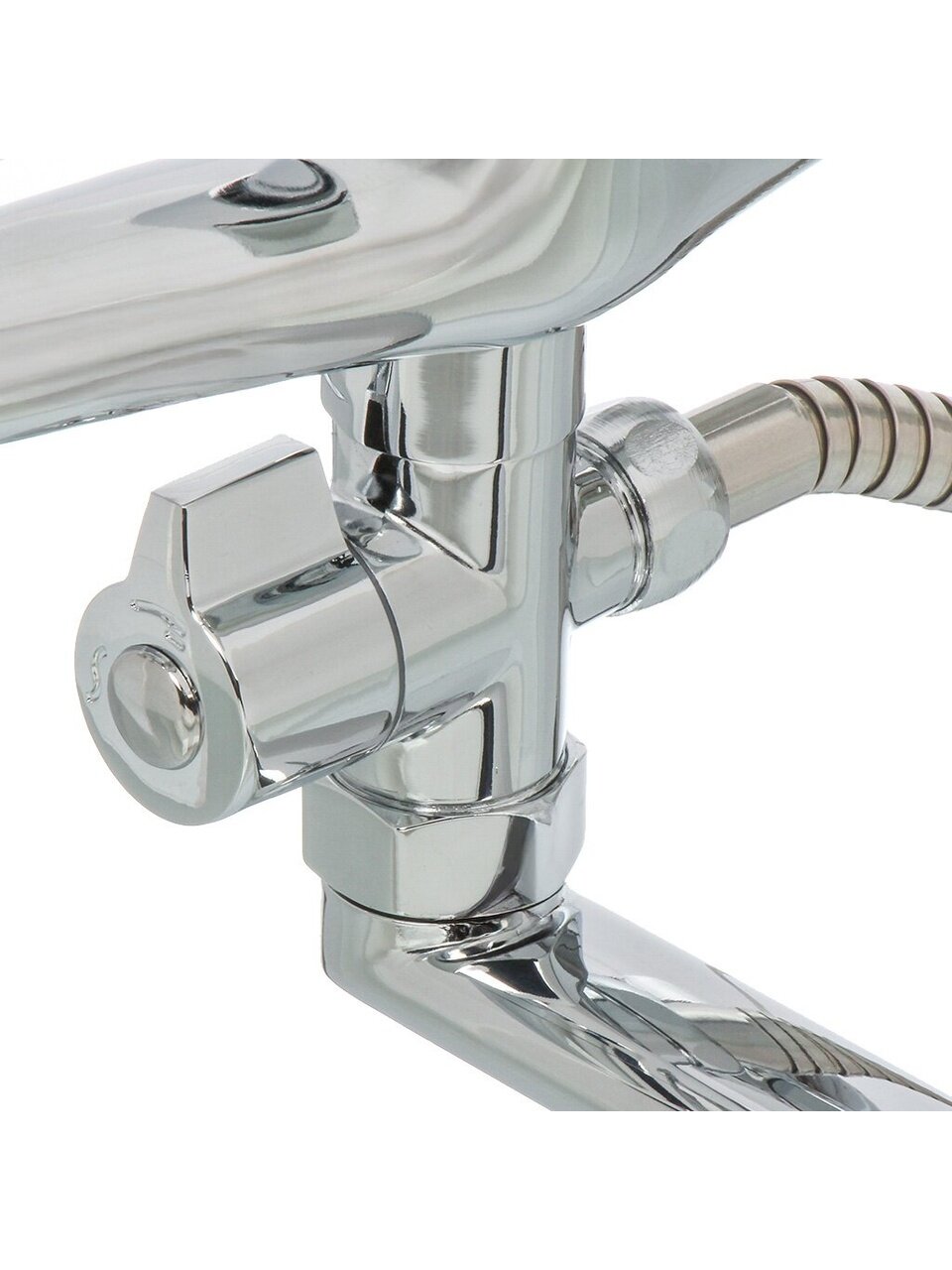 - Корпус из цинкового сплава с глянцевым хромом — устойчив к коррозии, межосевое расстояние 150 мм