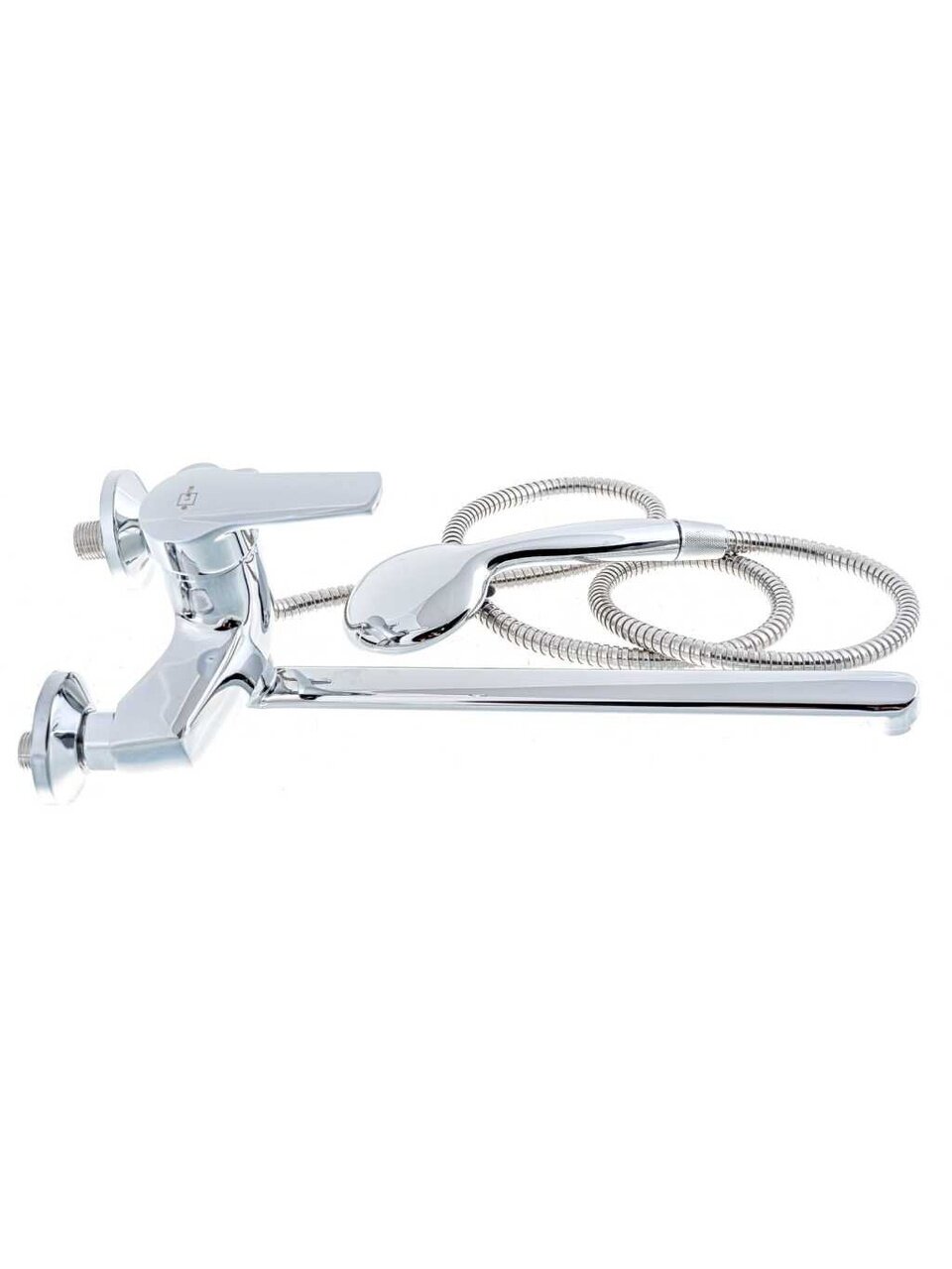 - Длинный излив 35 см и цинковый сплав корпуса — оптимально для стандартных ванн и душа, срок службы увеличен