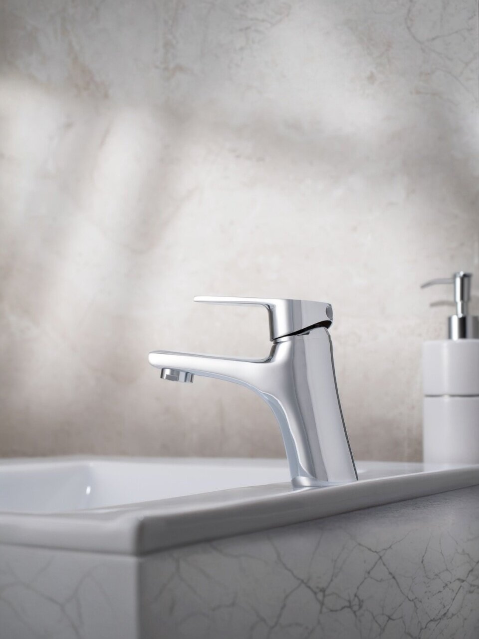 - Ультракомпактный короткий излив — удобно для небольших умывальников, экономит место и предотвращает разбрызгивание воды