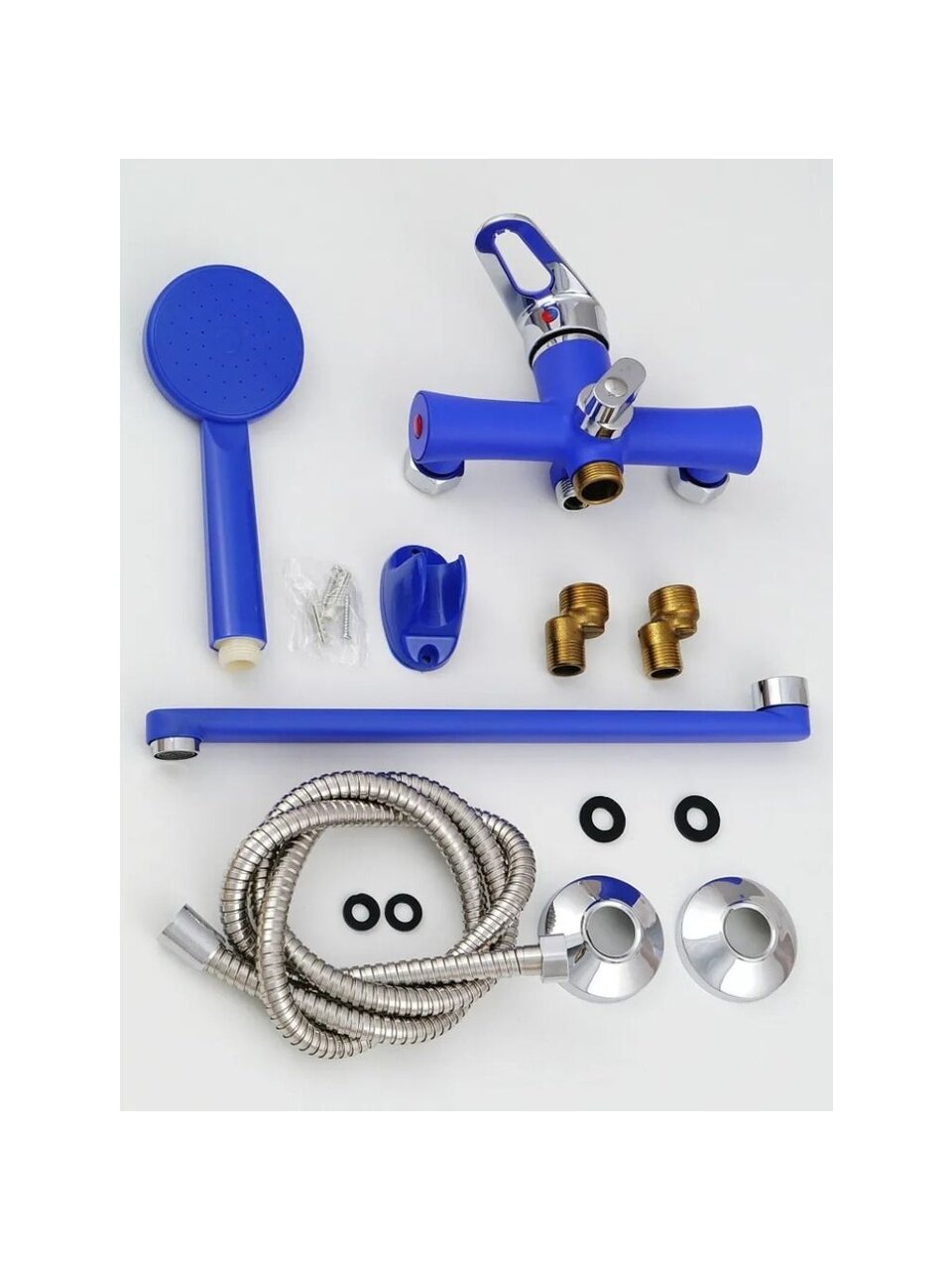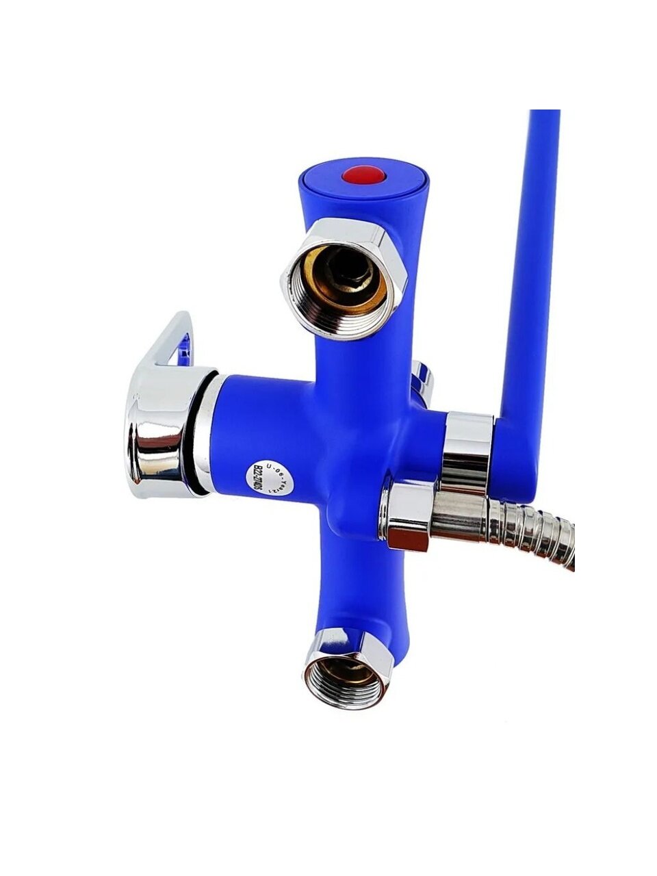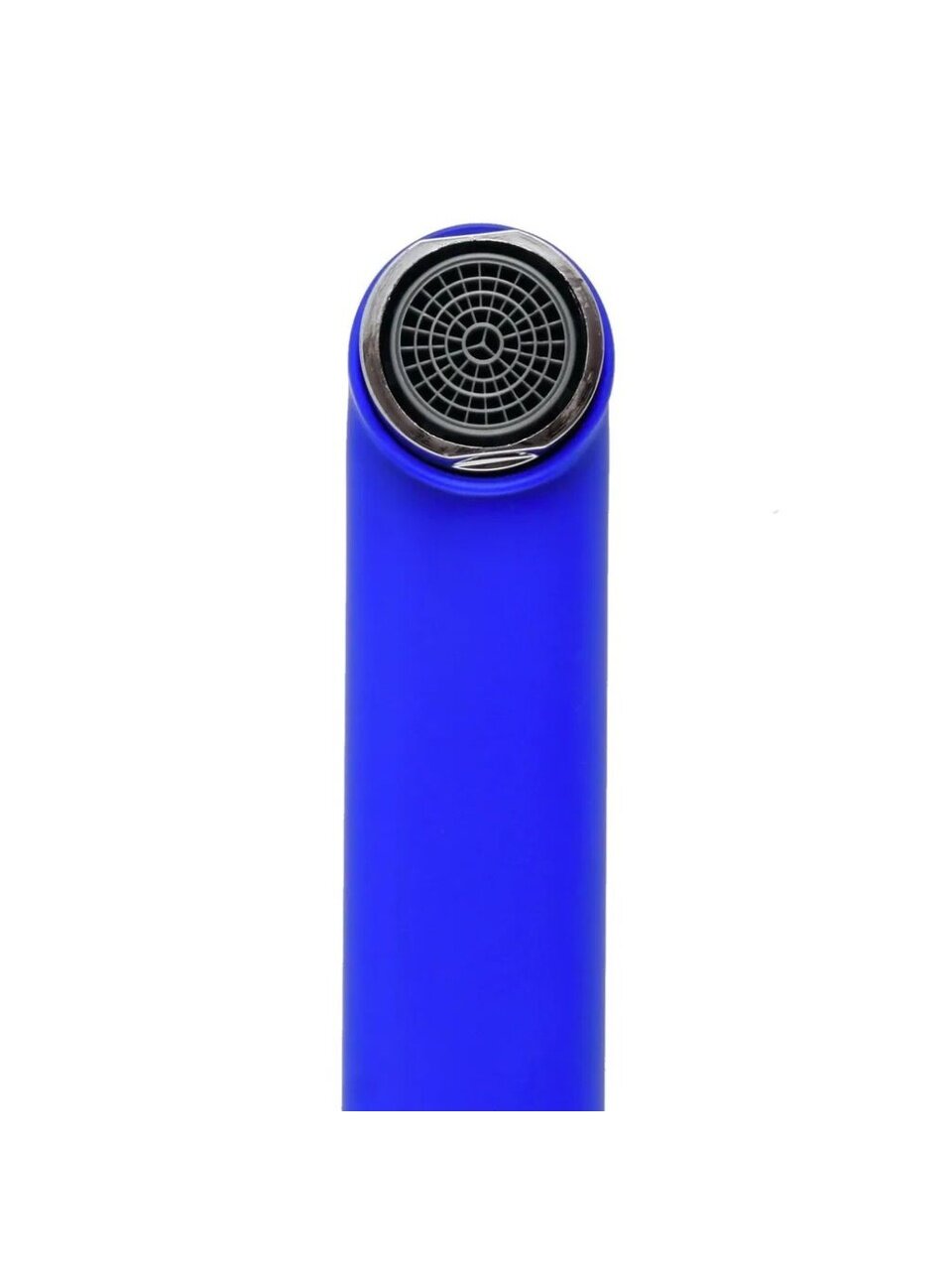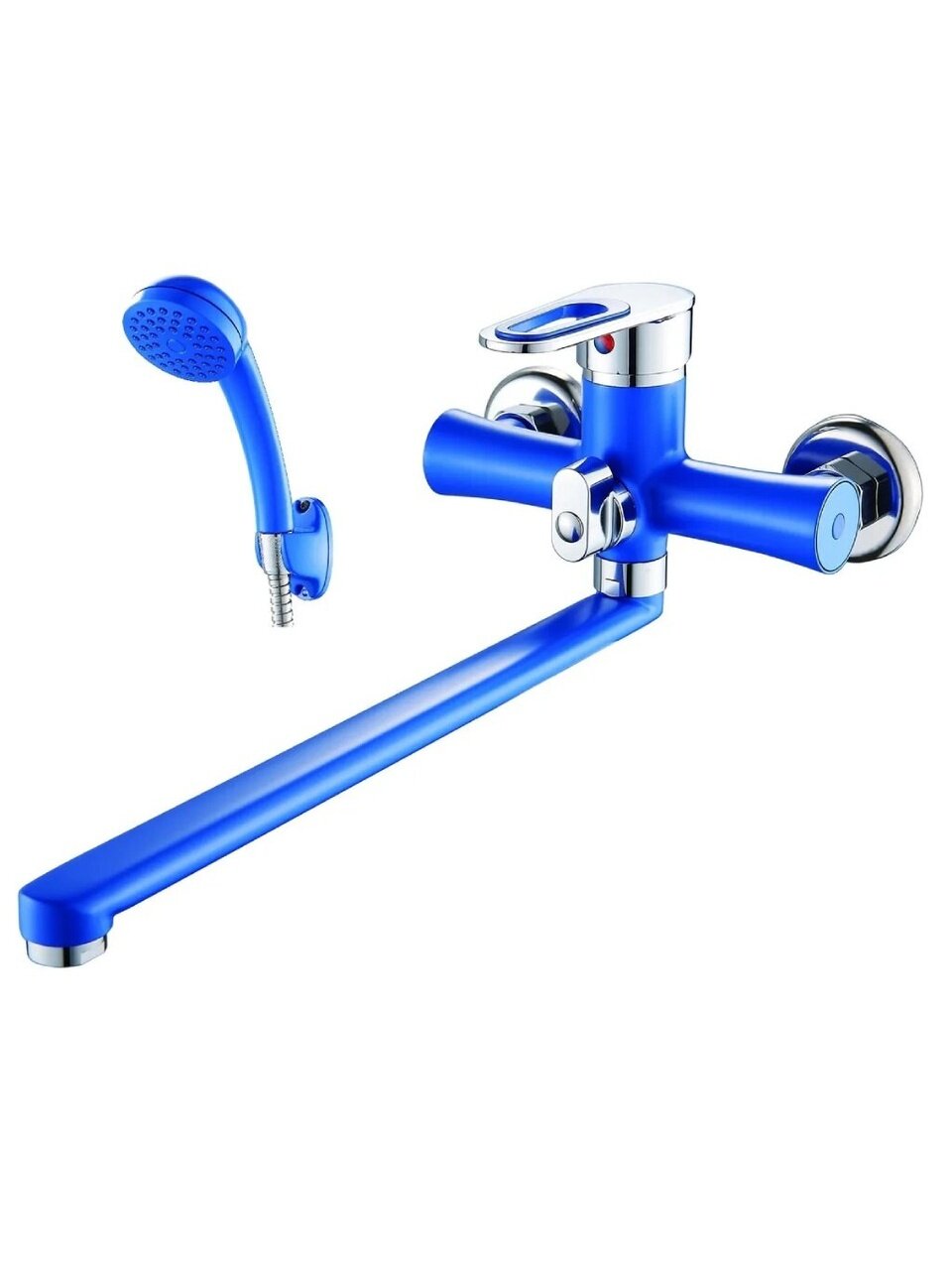 Смеситель для ванны Эверест B22-274DS: надежный поворотный кран с длинным изливом 32 см и лейкой. Яркий синий цвет, матовая поверхность — стильное решение для вашей ванной.
