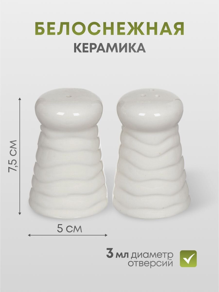 - Габариты солонки/перечницы: 7.5х5 см.
