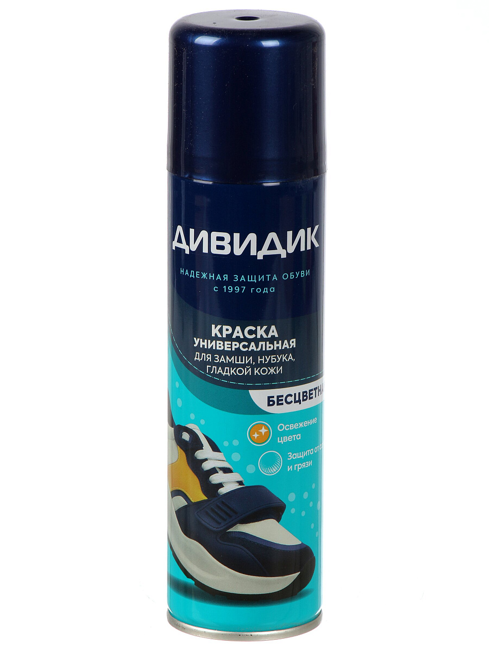 Краска для обуви Дивидик: универсальная бесцветная защита и обновление для кожи, замши, нубука. 250 мл — чистота и свежесть без следов и разводов.