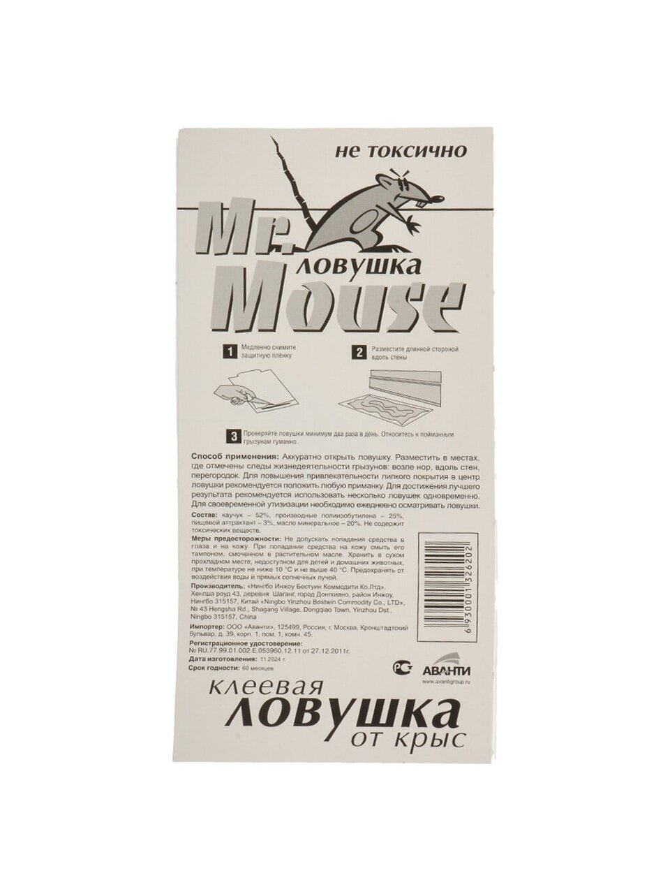 Ищете эффективное средство для борьбы с крысами? Родентицид Mr. Mouse - это надежное решение для вашего дома. Ловушка клеевая с 20 граммами клея обеспечивает простоту и безопасность в использовании. Произведено в Китае, этот продукт от бренда Mr.Mouse гарантирует качество и результативность.