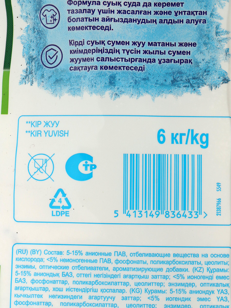 - Выгодная упаковка 6 кг — хватает на 40 циклов, удобно для больших семей и регулярного использования
