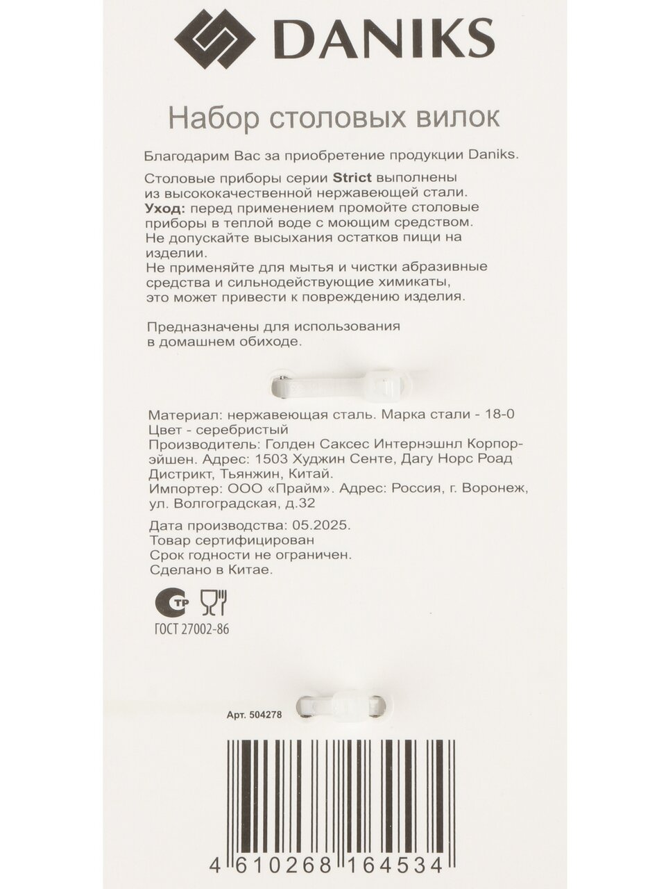 Вилка нержавеющая сталь, 3 предмета, столовая, Daniks, Strict