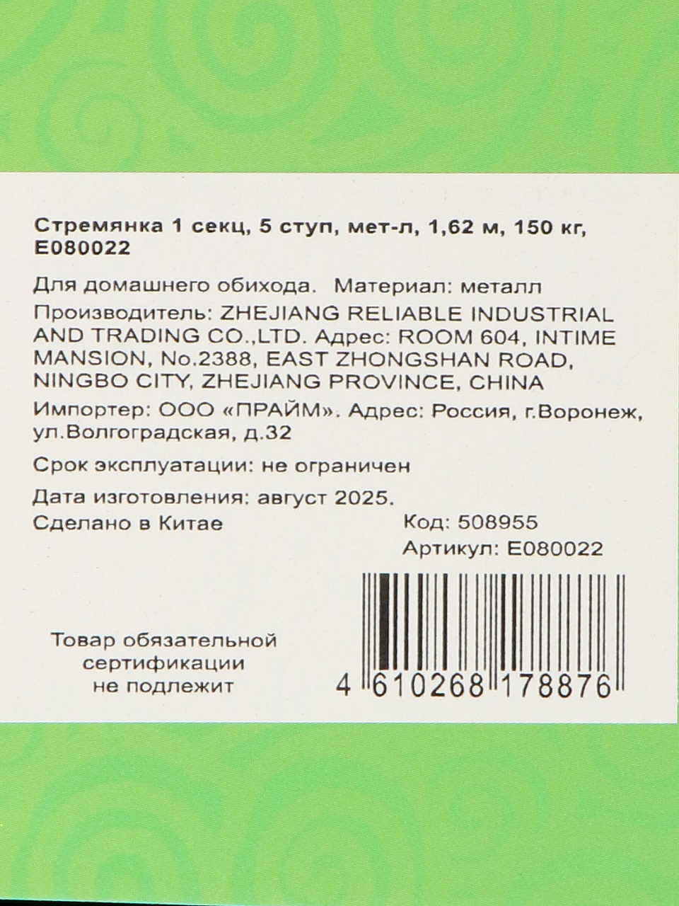 Стремянка металлическая, 5 ступеней, до 150 кг — безопасный и удобный выбор для дома и дачи. Лёгкая, складная, высота 1,62 м. Арт. E080022.