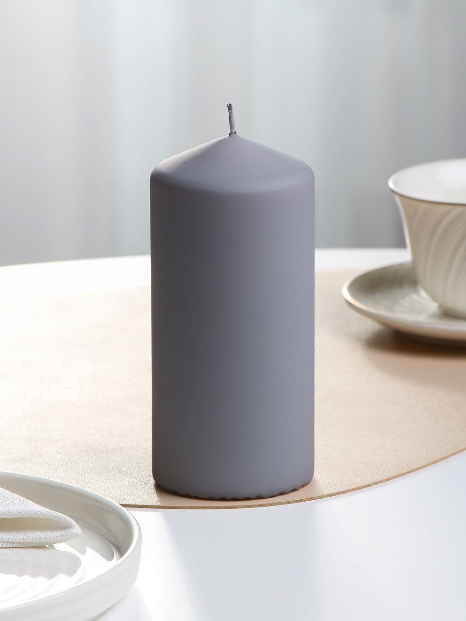 Добавьте уюта и стиля: ароматизированная свеча-колонна Bartek 7х15 см с бархатистой текстурой и элегантным серым оттенком для дома, дачи или подарка.