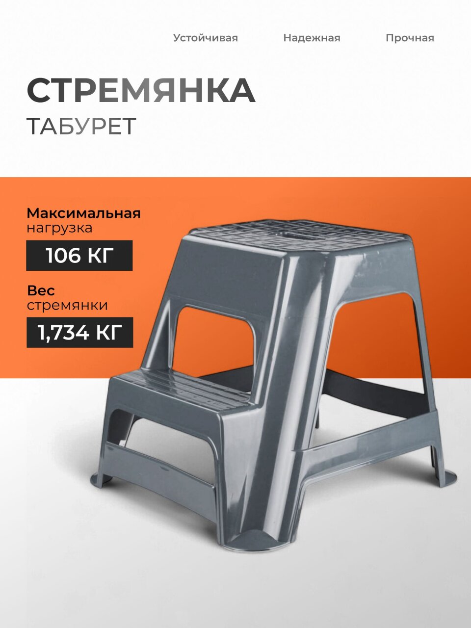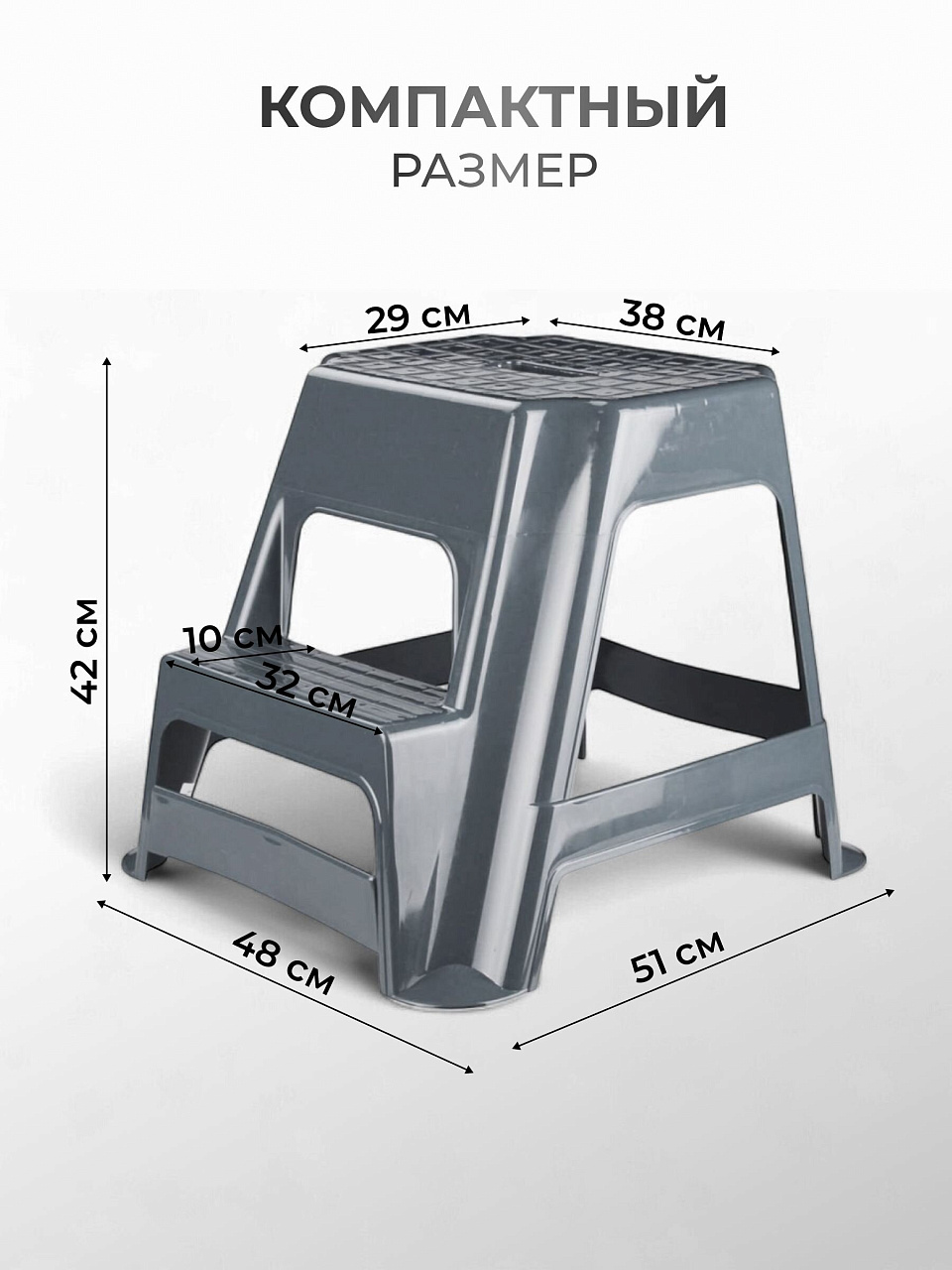 Табурет-стремянка 500х480х430 мм: компактное решение 2-в-1 для дома и дачи, выдерживает до 106 кг, выбор цвета — практично и удобно.