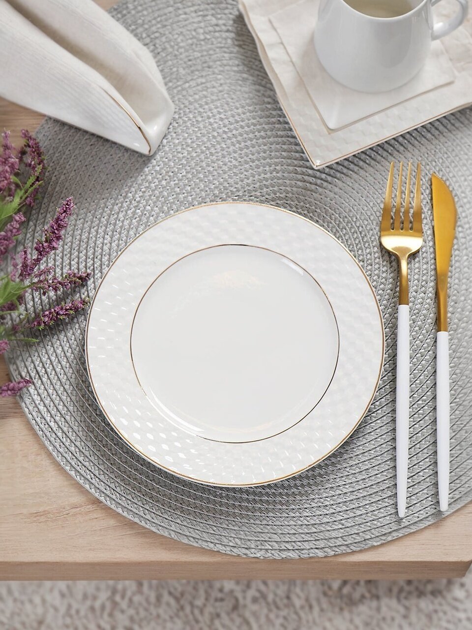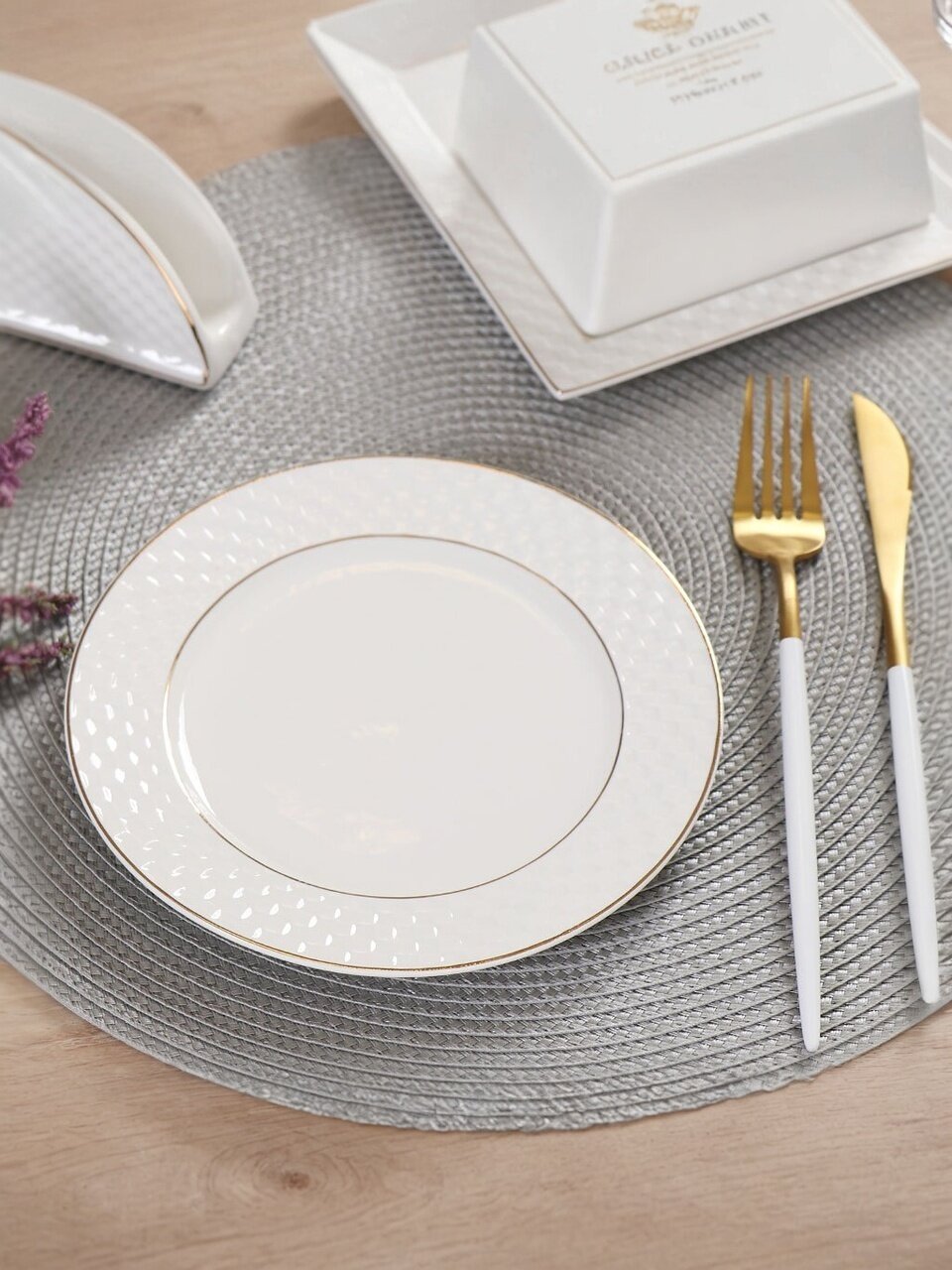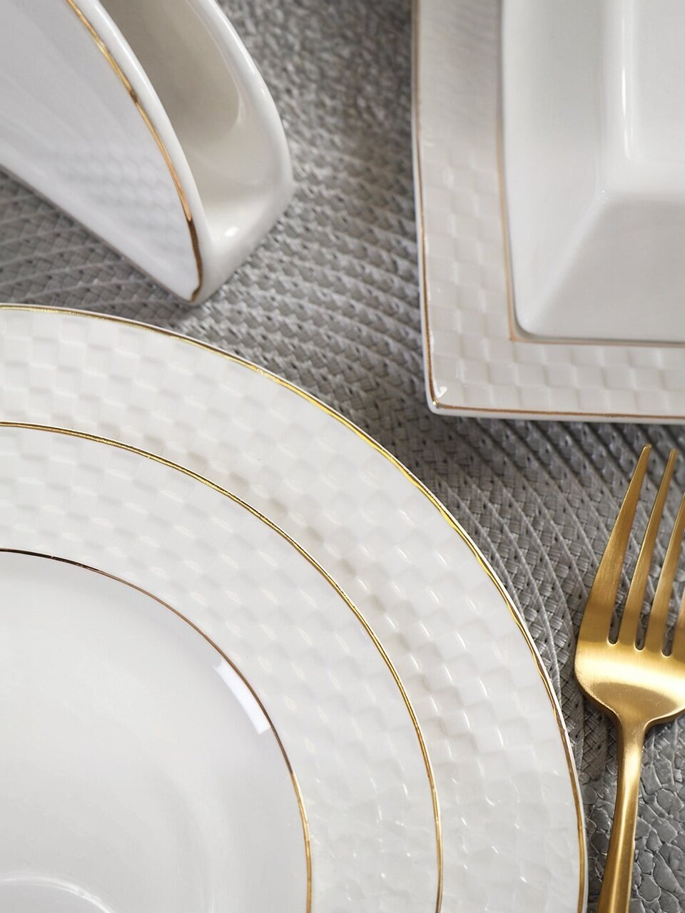 - Уникальный дизайн: белая керамика с изысканной золотой каймой подчеркнёт атмосферу праздника и повседневного ужина