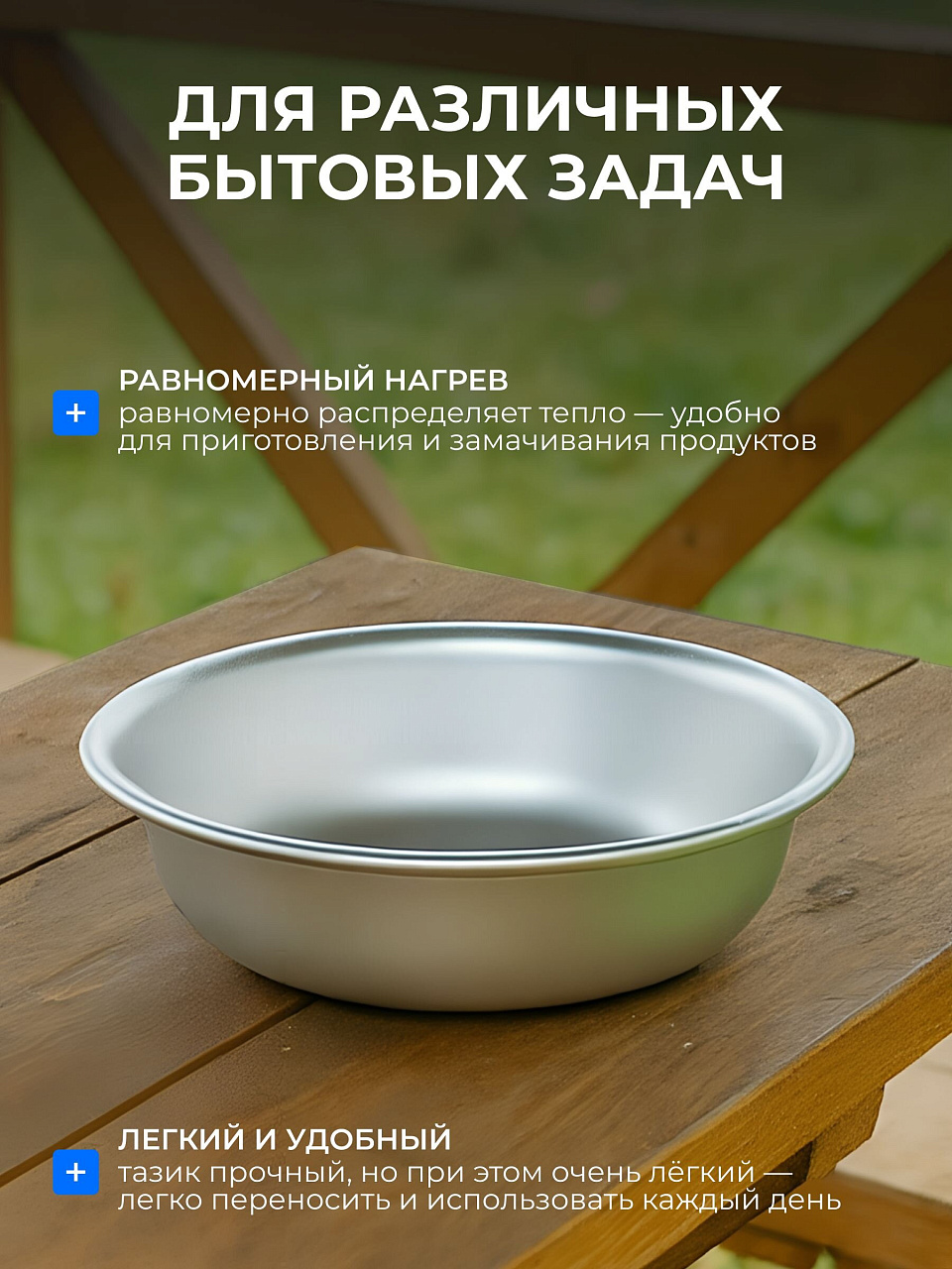 - Алюминиевый таз очень легкий, что делает его удобным в использовании. Вы можете легко переносить его с места на место, не испытывая при этом лишних физических нагрузок.