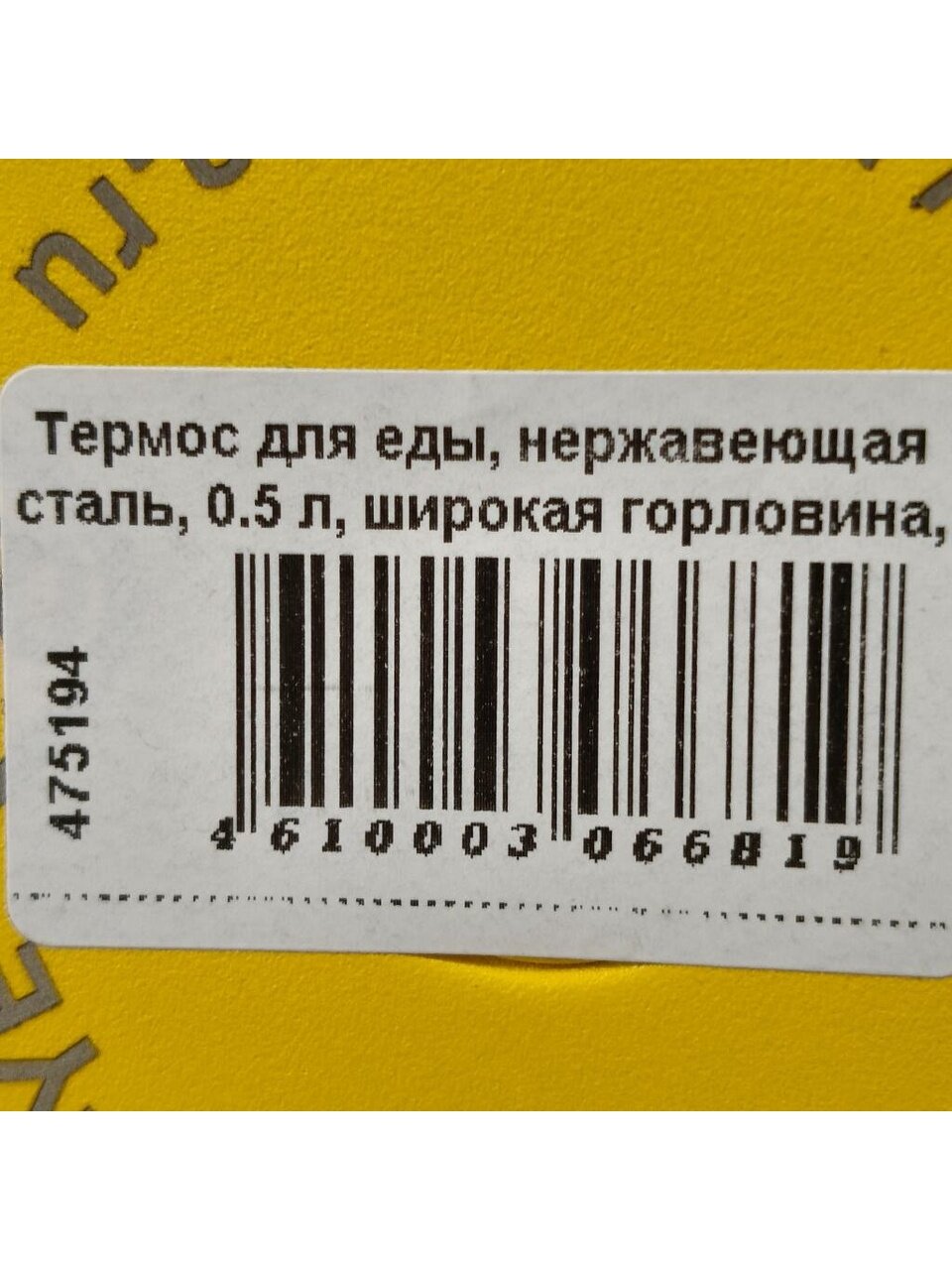 Вы можете приобрести «Термос для еды, нержавеющая сталь, 0.5 л, широкая горловина, Арктика, колба нержавеющая сталь, желтый, 311-500» и другие товары в нашем интернет-магазине в Астрахани по низким ценам и с бесплатным самовывозом.