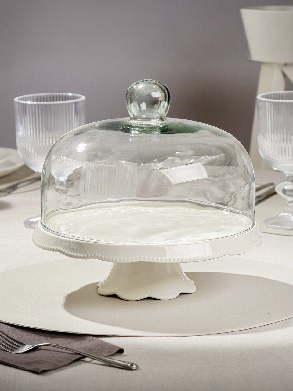 - Диаметр стеклянной крышки тортницы: 22.5 см.