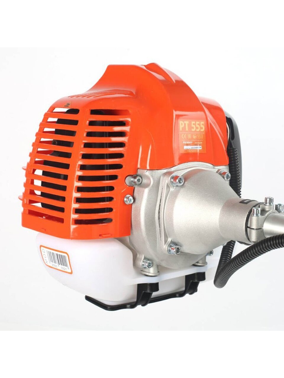 Мощный универсальный триммер РТ 555 с цельнометаллическим кованым валом и регулируемой велосипедной рукояткой предназначен для скашивания густой травы на неровных, больших площадях.