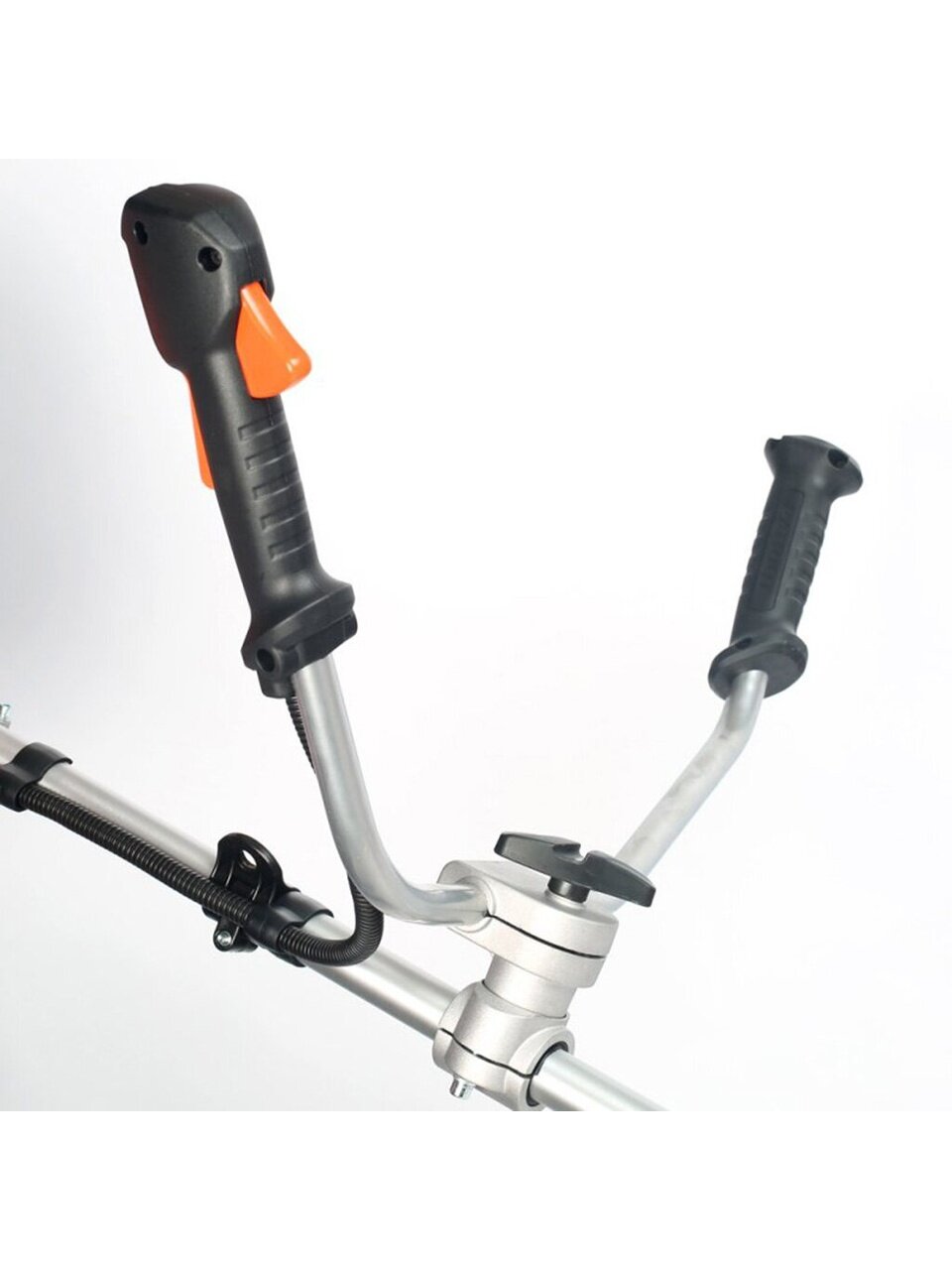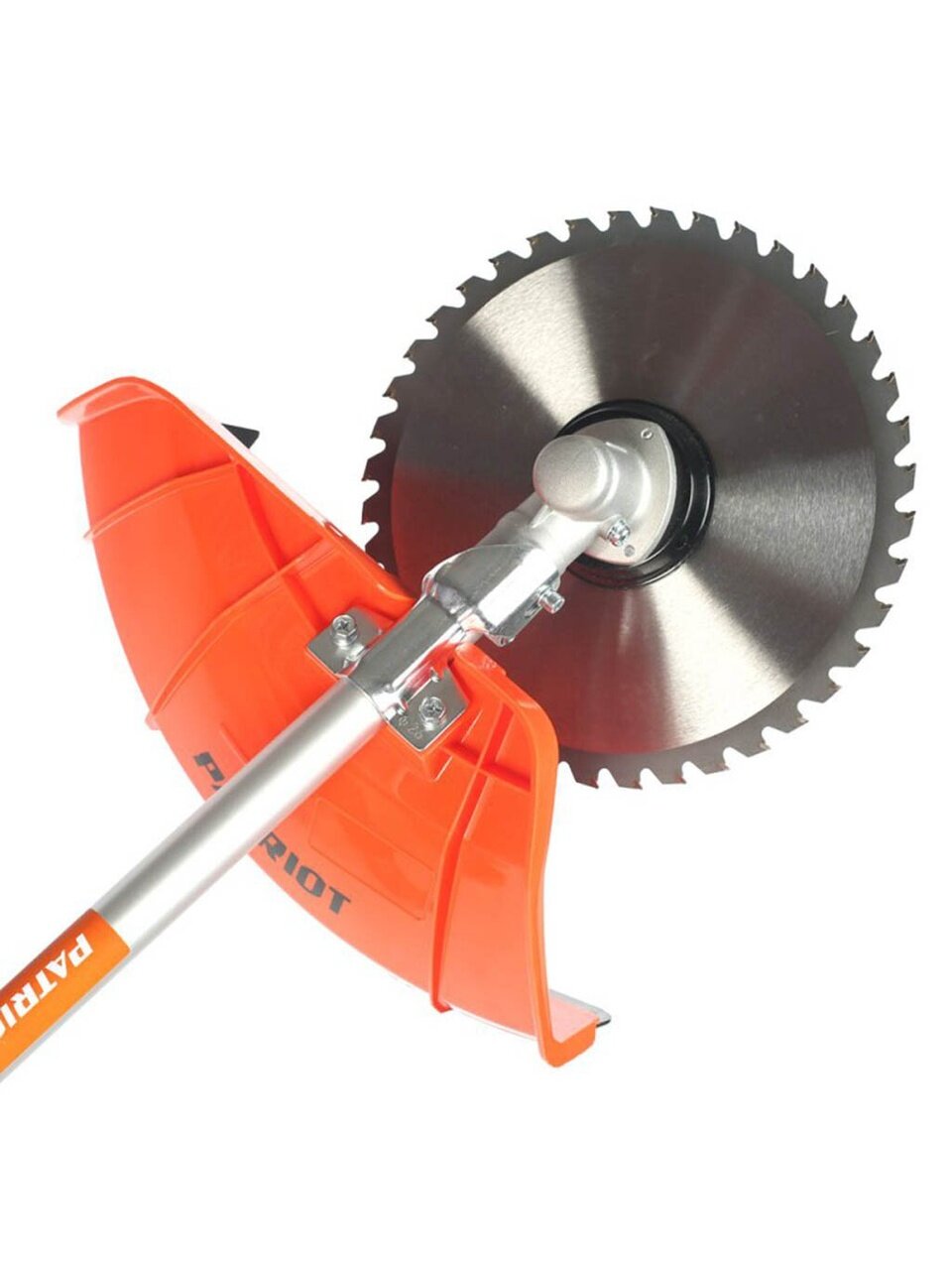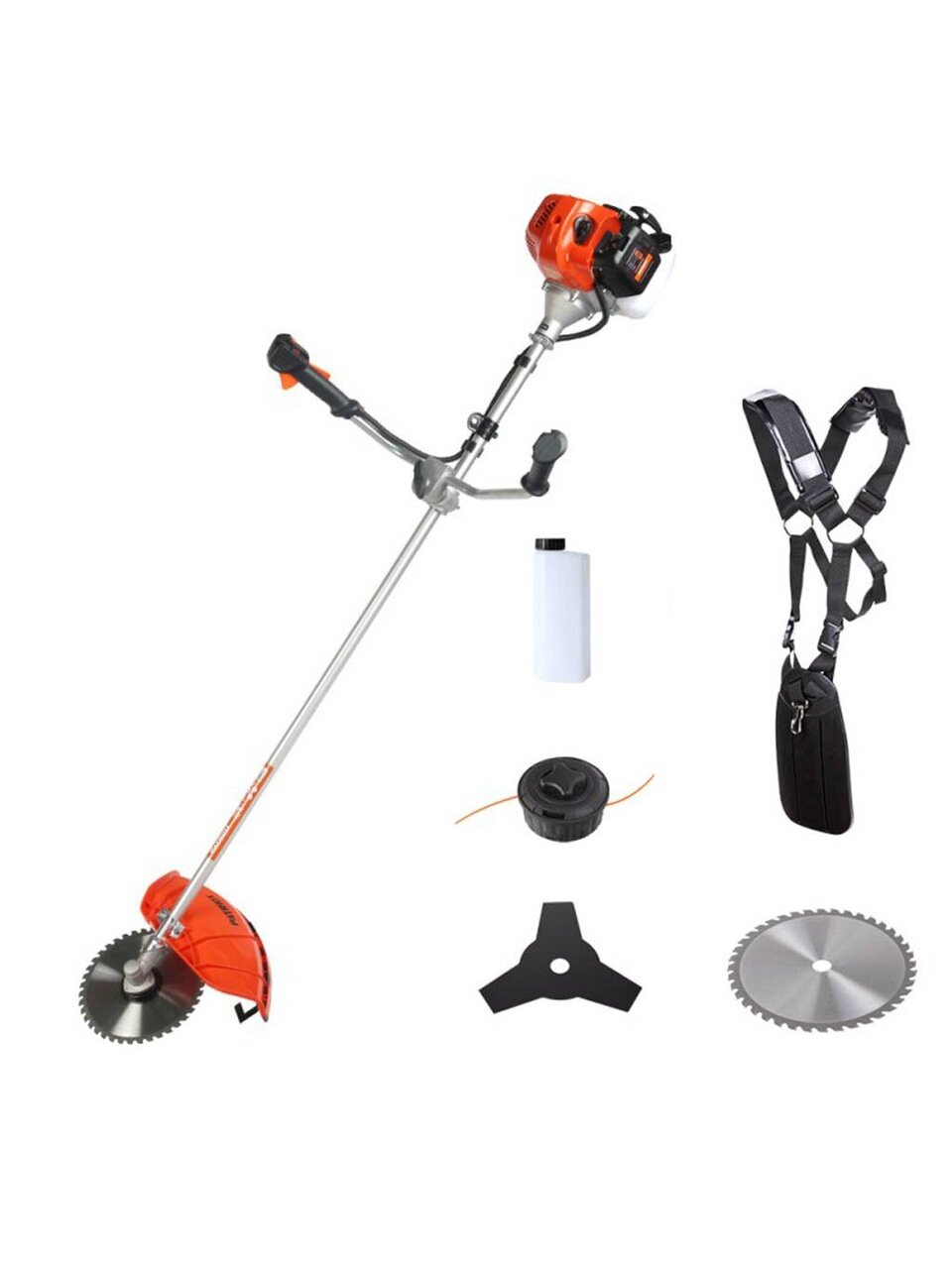 При замене лески на режущий нож применяется для скашивания сухостоя, жестких сорняков, небольших кустарников и тонких деревьев. Обладает высокой производительностью и отличным тяговым усилием.