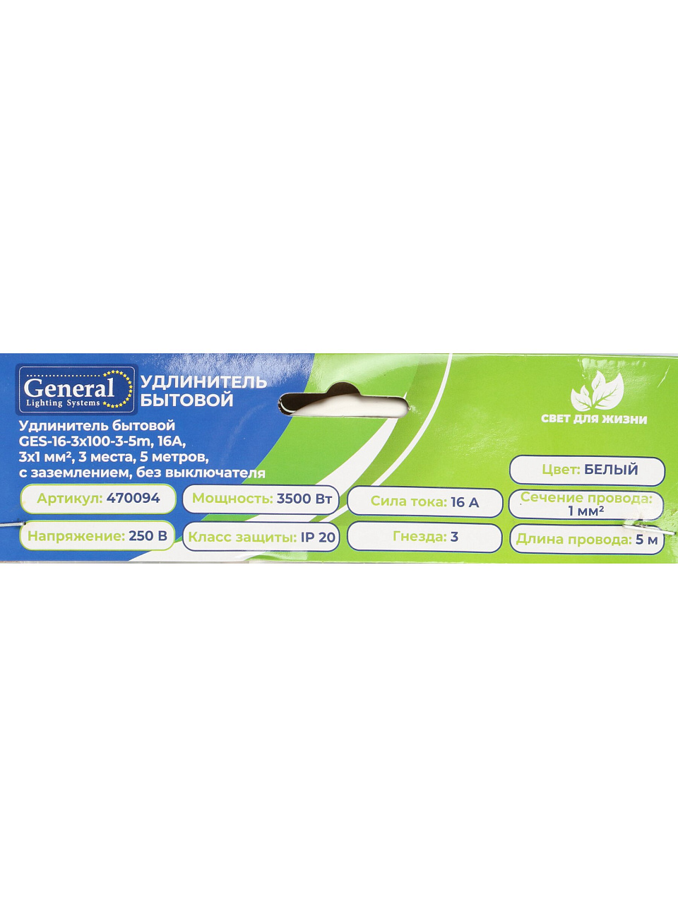 Вы можете приобрести «Удлинитель бытовой 3 гнезда, 5 м, ПВС, 3х1 мм², с заземлением, 16 А, 3500 Вт, General Lighting Systems, 470094» и другие товары в нашем интернет-магазине в Ельце по низким ценам и с бесплатным самовывозом.