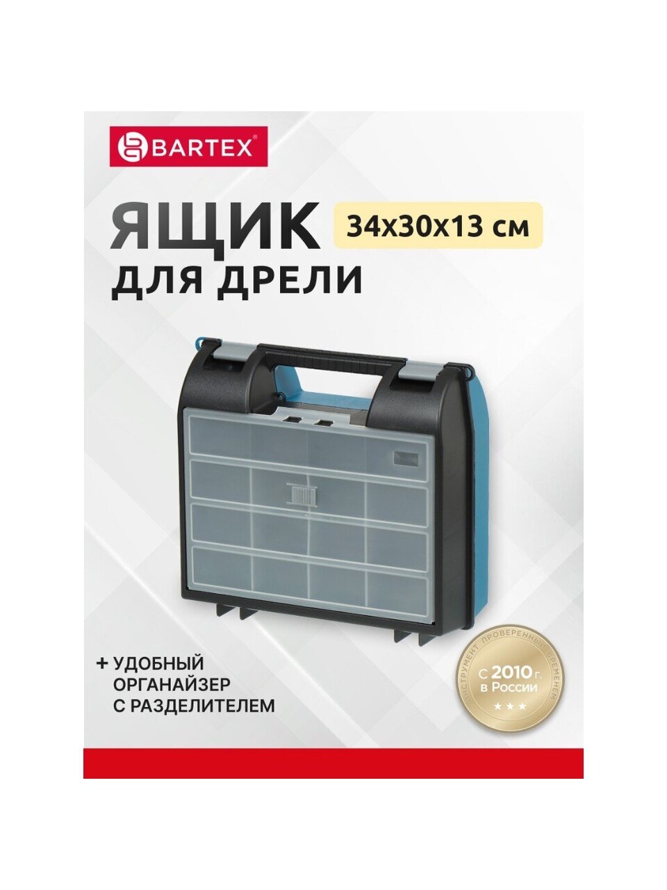Ящик для дрели– надежный друг и помощник любого мастера. Модель Bartex 278035502 позволит компактно хранить дрель и держать все нужные насадки под рукой. Изделие выполнено из прочного пластика. Ящик закрывается при помощи защелок.